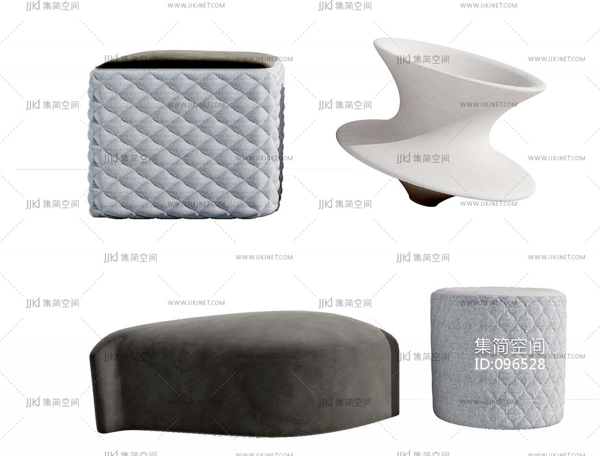 现代绒面凳子沙发凳坐墩 3d模型下载 [模型ID:96528]