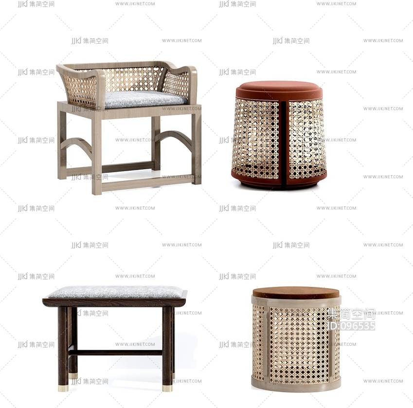 新中式竹编凳子休闲椅,凳子 3d模型下载 [模型ID:96535]