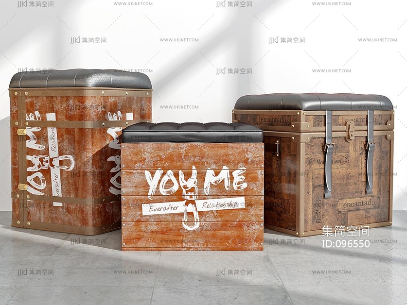工业风皮革方形凳子 3d模型下载 [模型ID:96550]