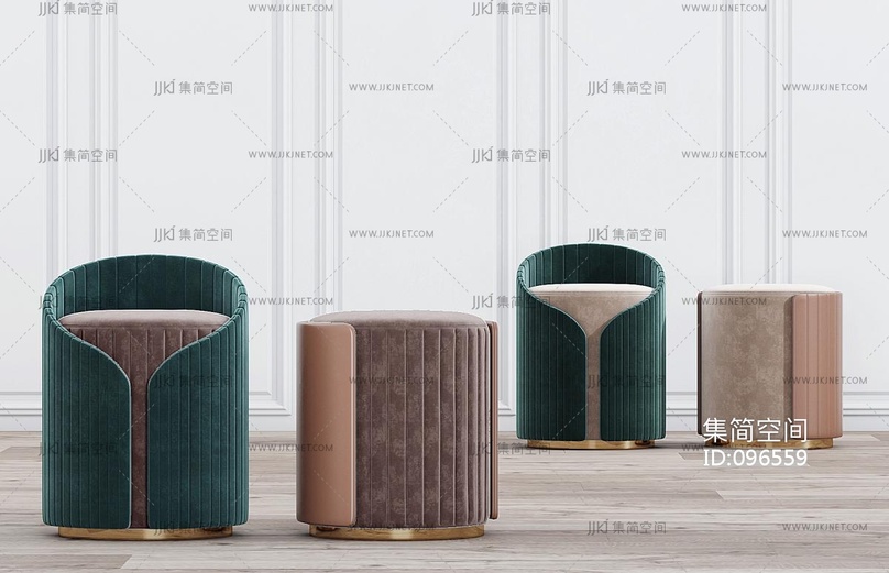 现代绒布凳子组合 3d模型下载 [模型ID:96559]