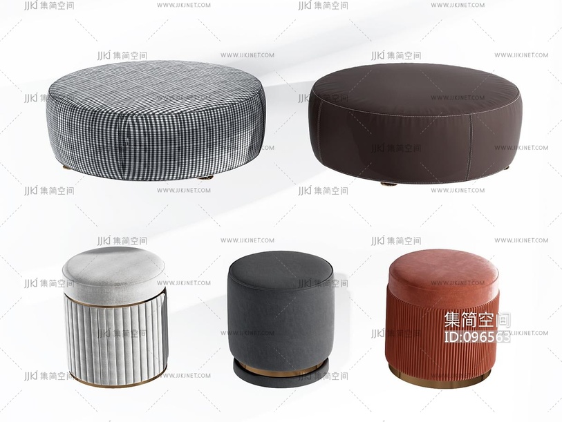 现代布艺皮革圆凳坐墩 3d模型下载 [模型ID:96563]