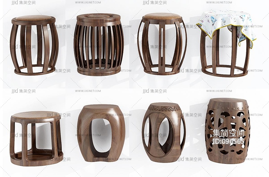 中式实木圆凳鼓凳组合 3d模型下载 [模型ID:96565]