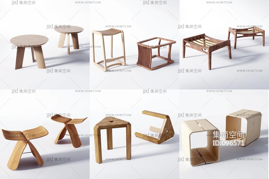 北欧原木凳子,圆形方形坐凳组合 3d模型下载 [模型ID:96571]