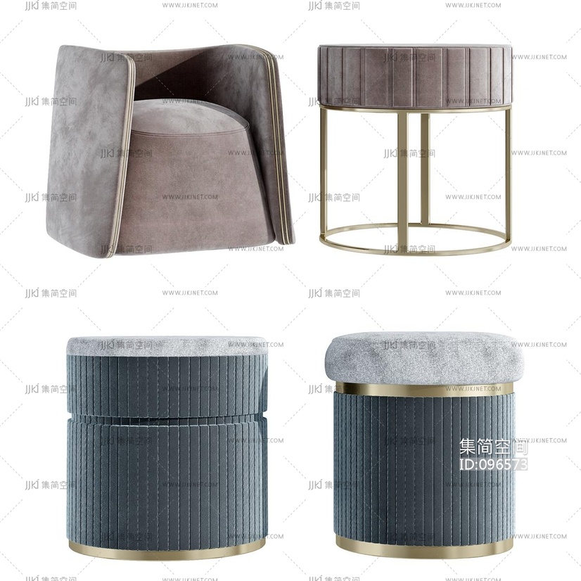 现代布艺圆沙发凳 3d模型下载 [模型ID:96573]