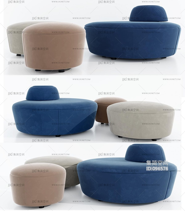 现代圆形布艺沙发凳 3d模型下载 [模型ID:96576]