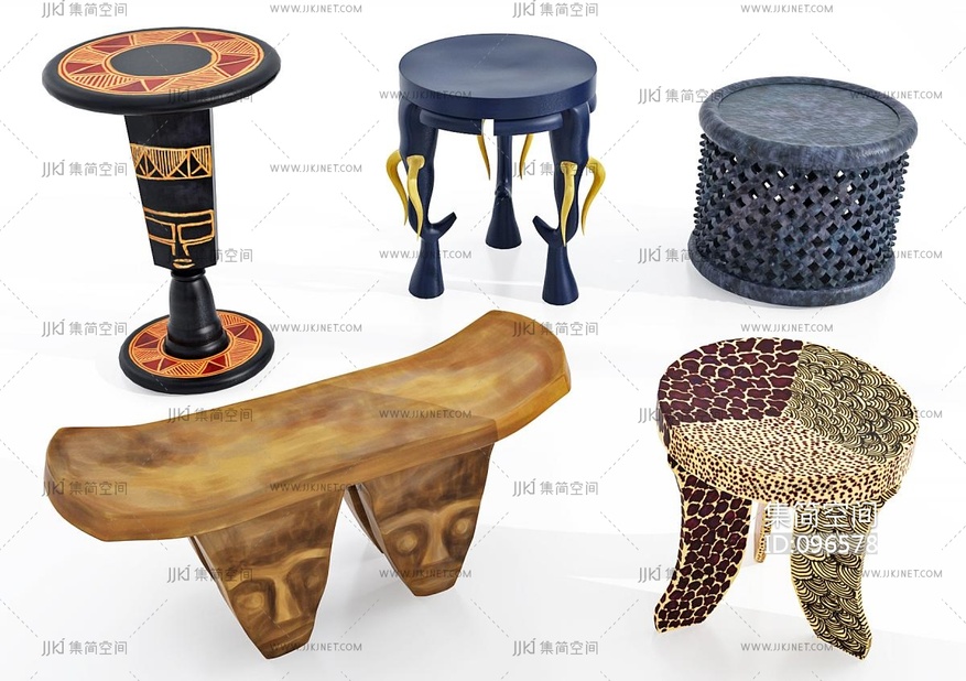 东南亚混搭板凳,圆墩 3d模型下载 [模型ID:96578]