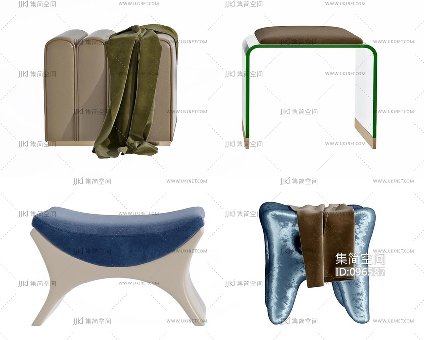 现代绒布凳子坐墩 3d模型下载 [模型ID:96587]