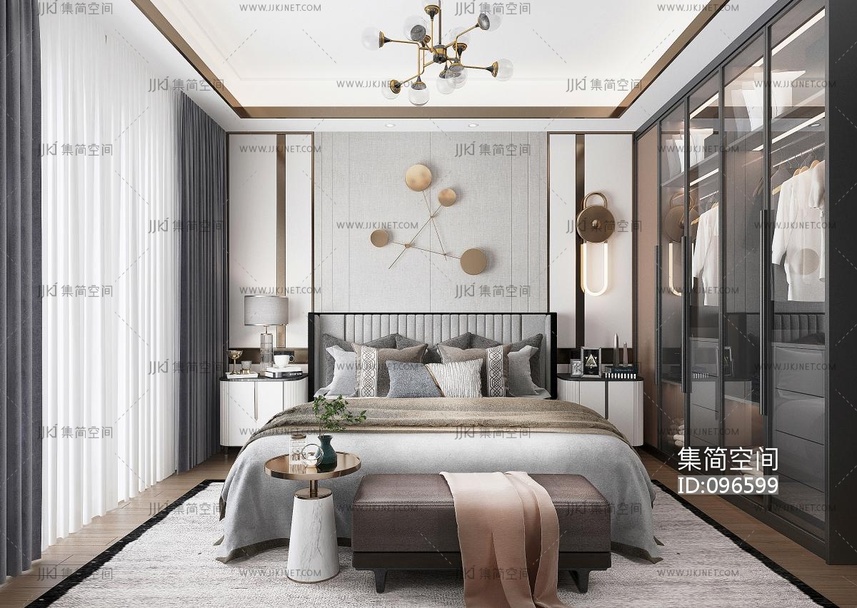 现代轻奢卧室 3d模型下载 [模型ID:96599]