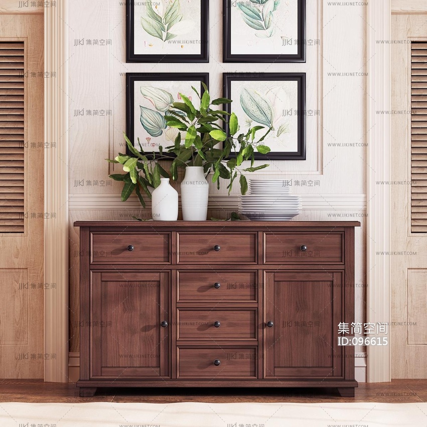 美式原木餐边柜 3d模型下载 [模型ID:96615]