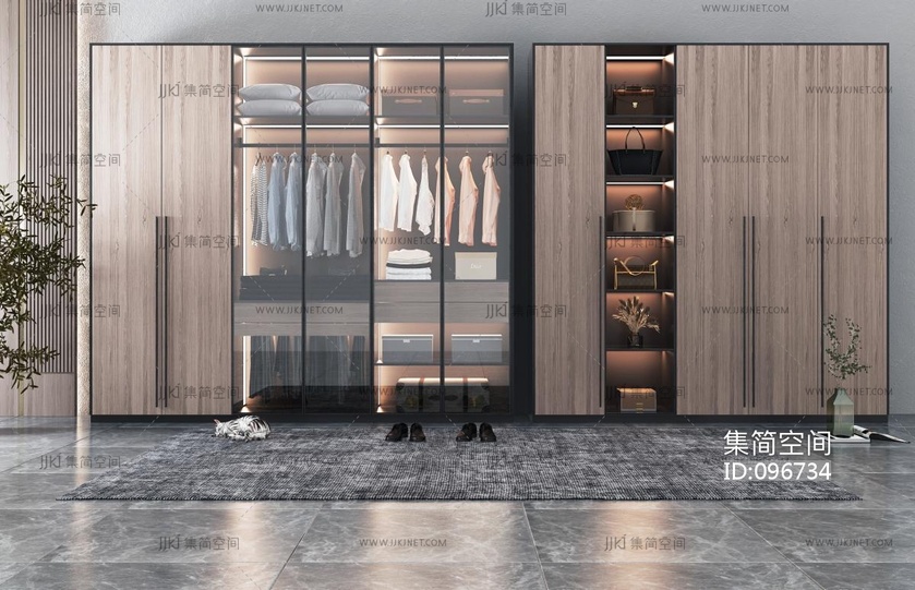 现代平开门衣柜, 3d模型下载 [模型ID:96734]