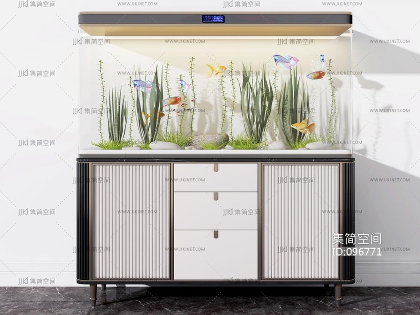 现代鱼缸水族箱,水草 3d模型下载 [模型ID:96771]