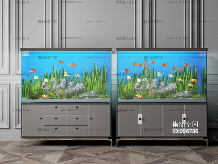 新中式水族鱼缸, 3d模型下载 [模型ID:96786]
