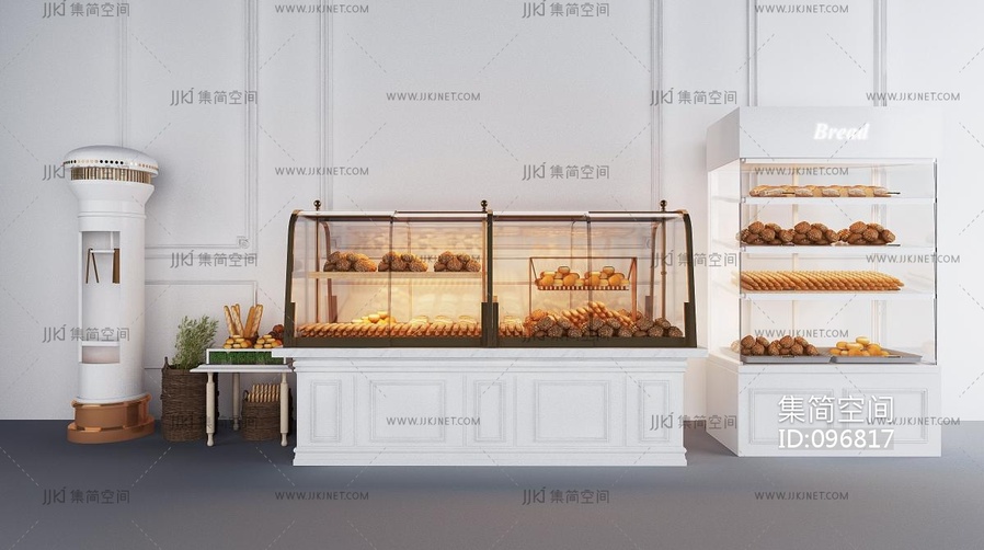 简欧面包,糕点展柜,货柜 3d模型下载 [模型ID:96817]