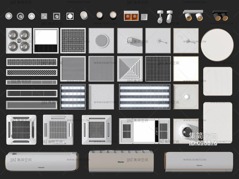 现代壁挂空调风口,铝扣板,浴霸组合 3d模型下载 [模型ID:96876]