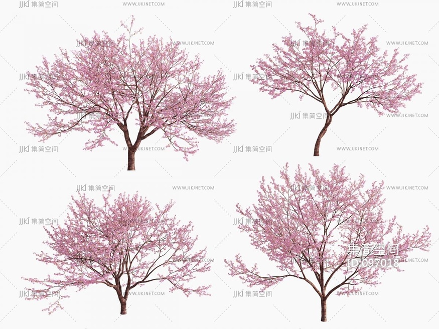 现代樱花树景观树, 3d模型下载 [模型ID:97018]