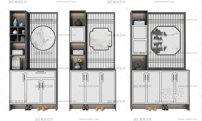 新中式隔断鞋柜, 3d模型下载 [模型ID:97042]