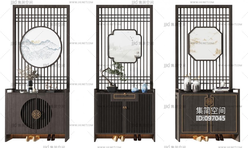 新中式入户鞋柜屏风 3d模型下载 [模型ID:97045]