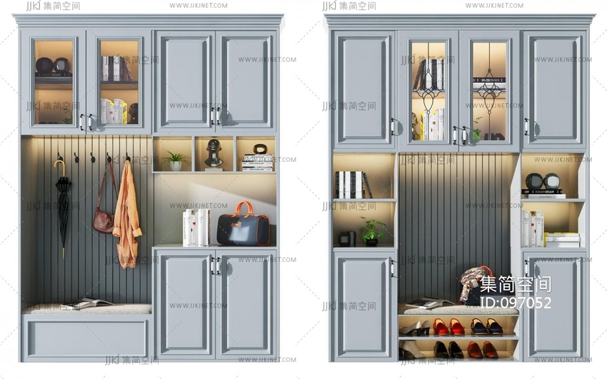 美式多功能鞋柜,衣物,饰品摆件, 3d模型下载 [模型ID:97052]