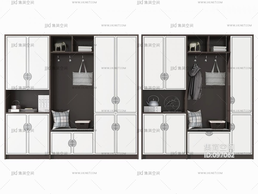 新中式入户鞋柜,饰品摆件 3d模型下载 [模型ID:97062]