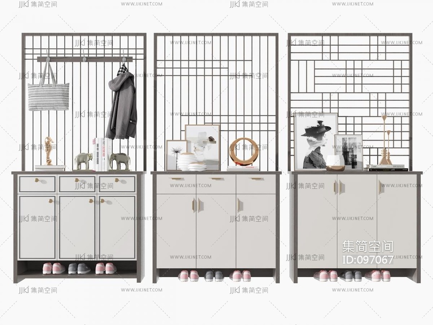 新中式入户屏风鞋柜 3d模型下载 [模型ID:97067]
