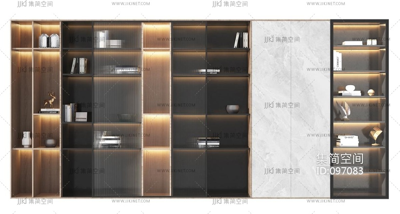 现代嵌入式书柜, 3d模型下载 [模型ID:97083]