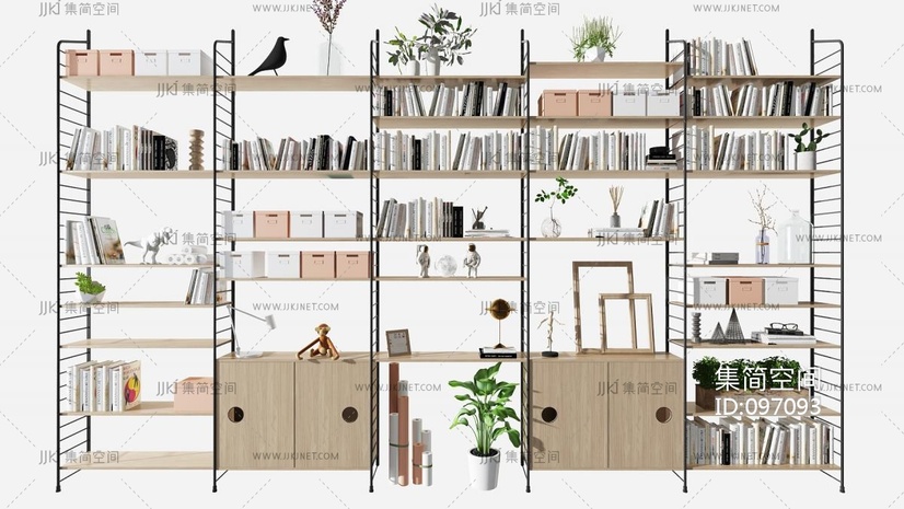 米洛提_米诺提现代书柜 金属书架3d模型下载