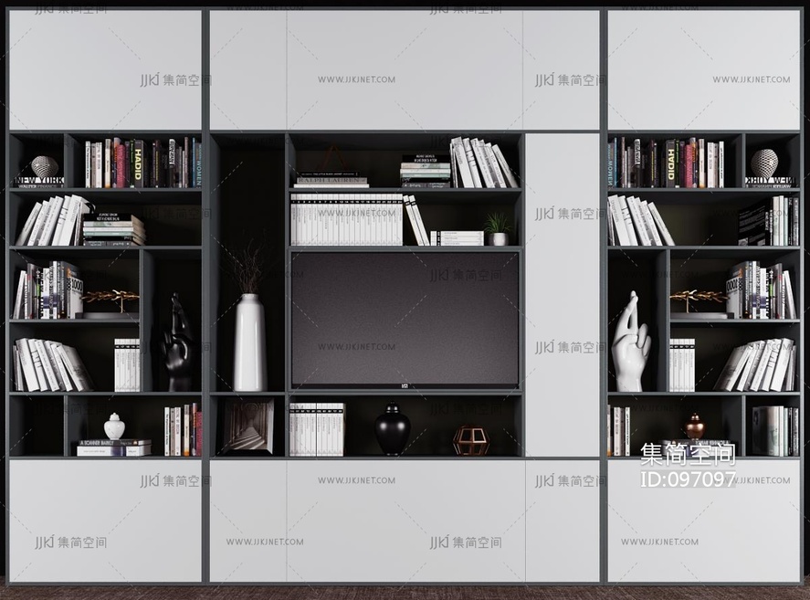 现代一体式电视柜书柜, 3d模型下载 [模型ID:97097]