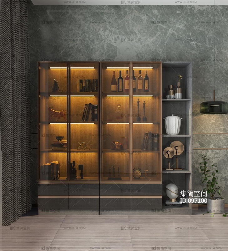现代轻奢书柜, 3d模型下载 [模型ID:97100]