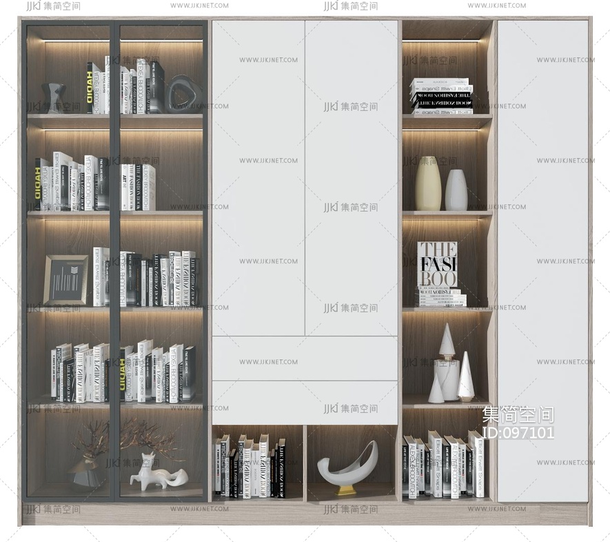 现代原木书柜, 3d模型下载 [模型ID:97101]