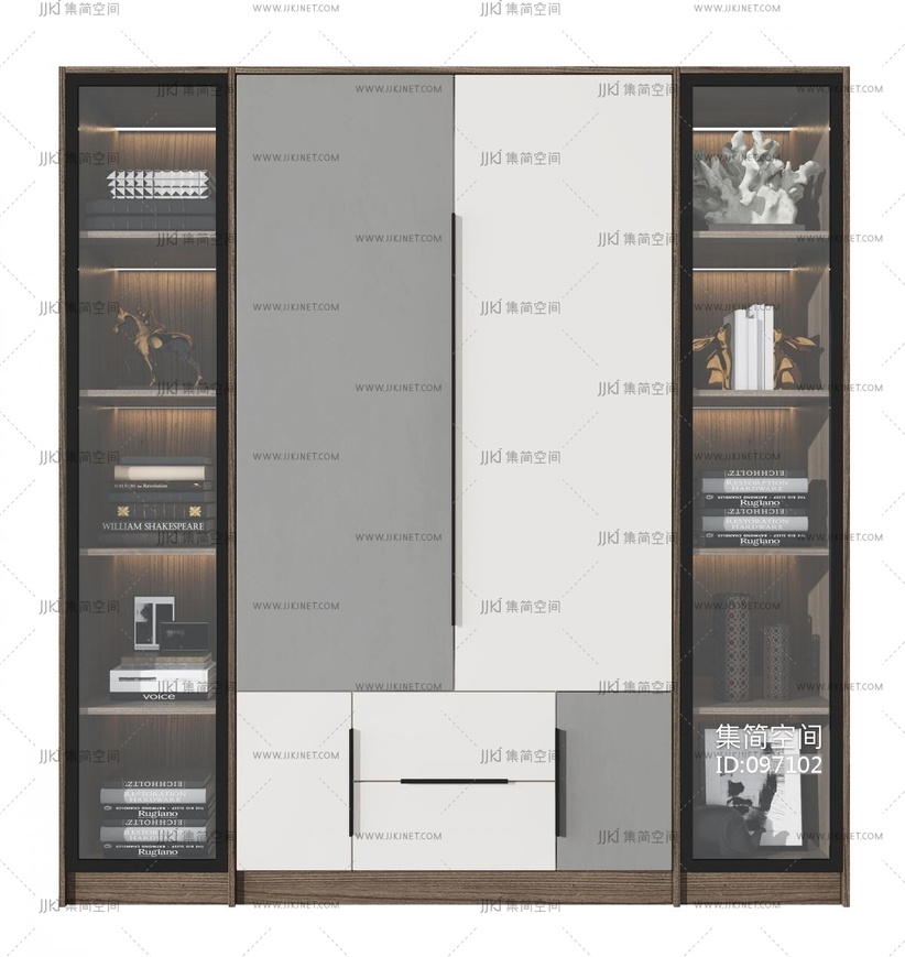 现代装饰柜,书柜 3d模型下载 [模型ID:97102]