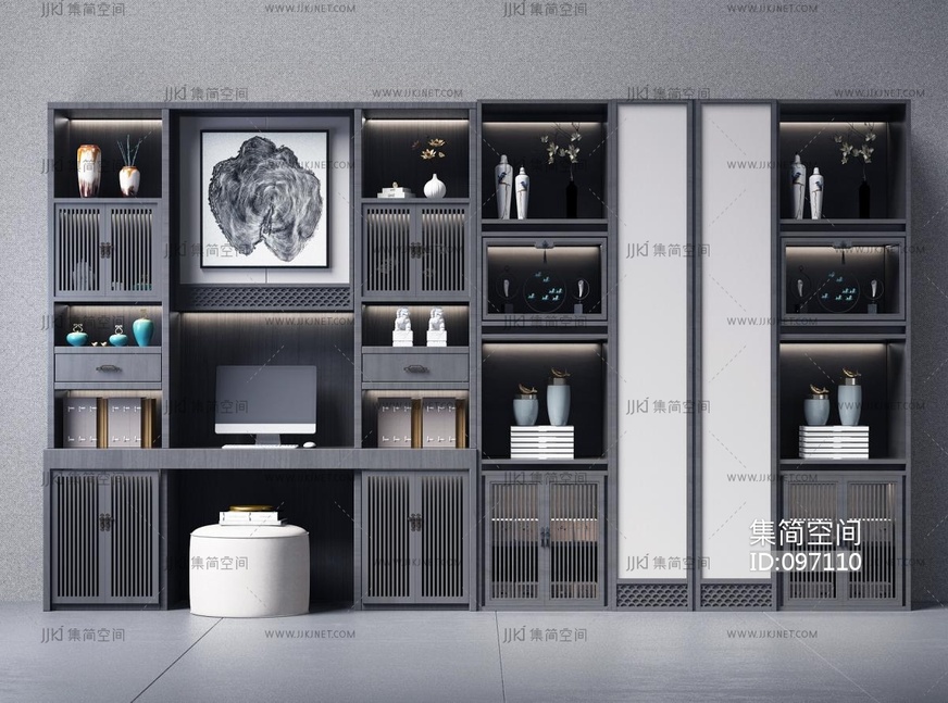-新中式书柜 3d模型下载