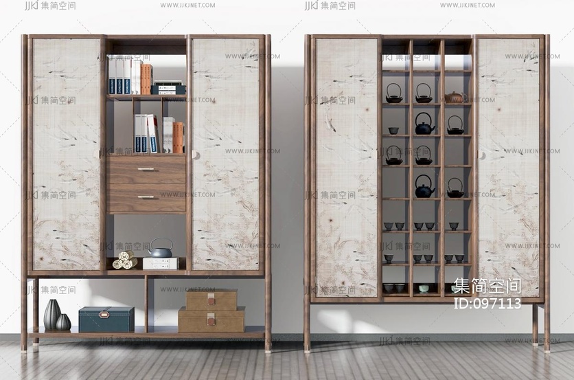 新中式书架,博古架 3d模型下载 [模型ID:97113]