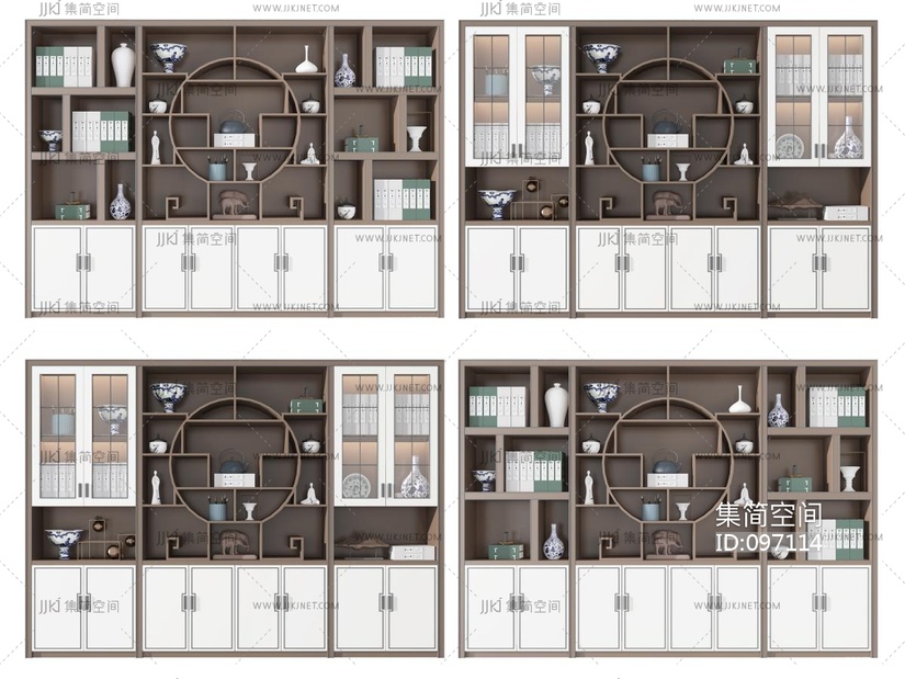 -新中式书柜 3d模型下载