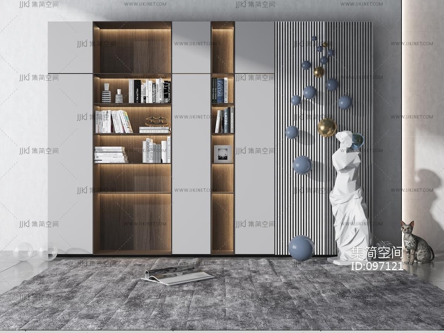 米洛提_米诺提现代书柜 金属书架3d模型下载