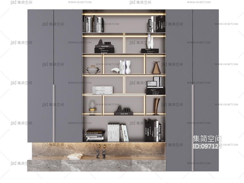现代轻奢书柜 3d模型下载 [模型ID:97122]
