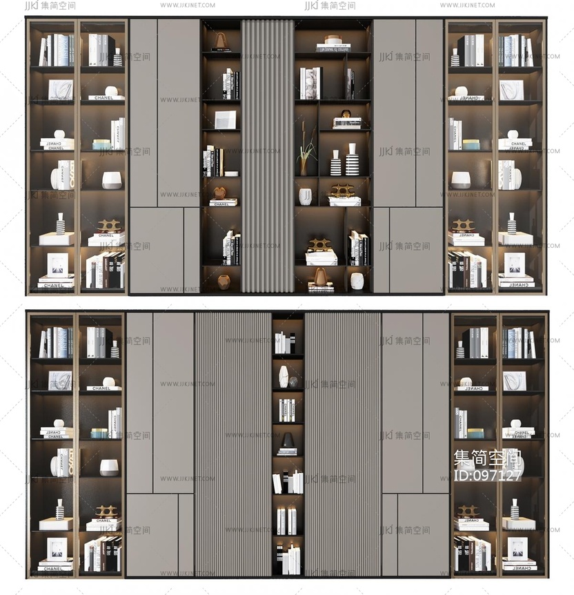 现代陈列柜书柜 3d模型下载 [模型ID:97127]
