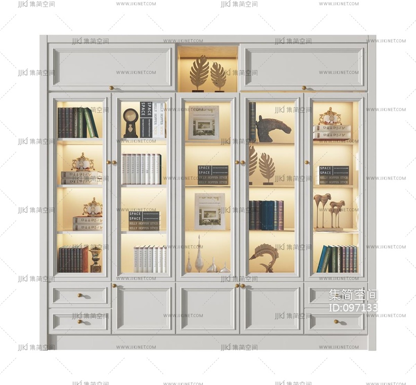 欧式简约书柜, 3d模型下载 [模型ID:97133]