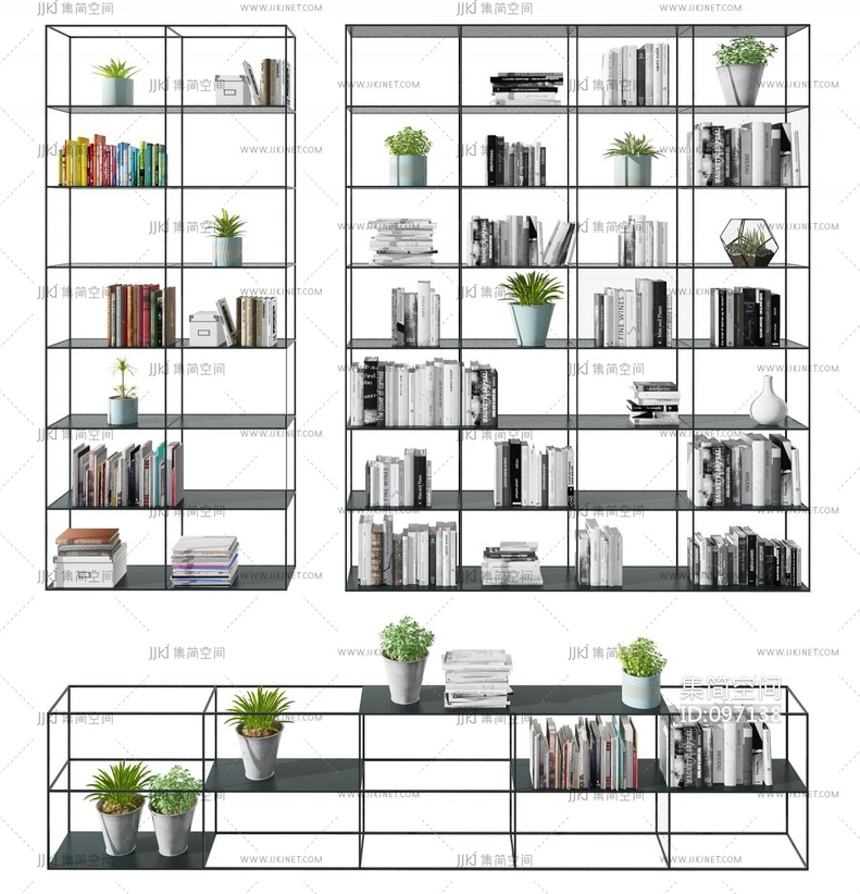 工业风简约金属书架,书籍,饰品摆件 3d模型下载 [模型ID:97138]