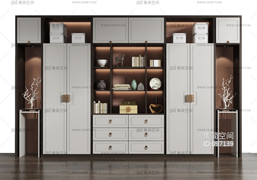 新中式书柜, 3d模型下载 [模型ID:97139]