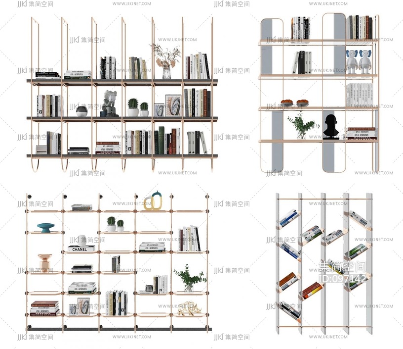 现代金属装饰架,书架 3d模型下载 [模型ID:97142]