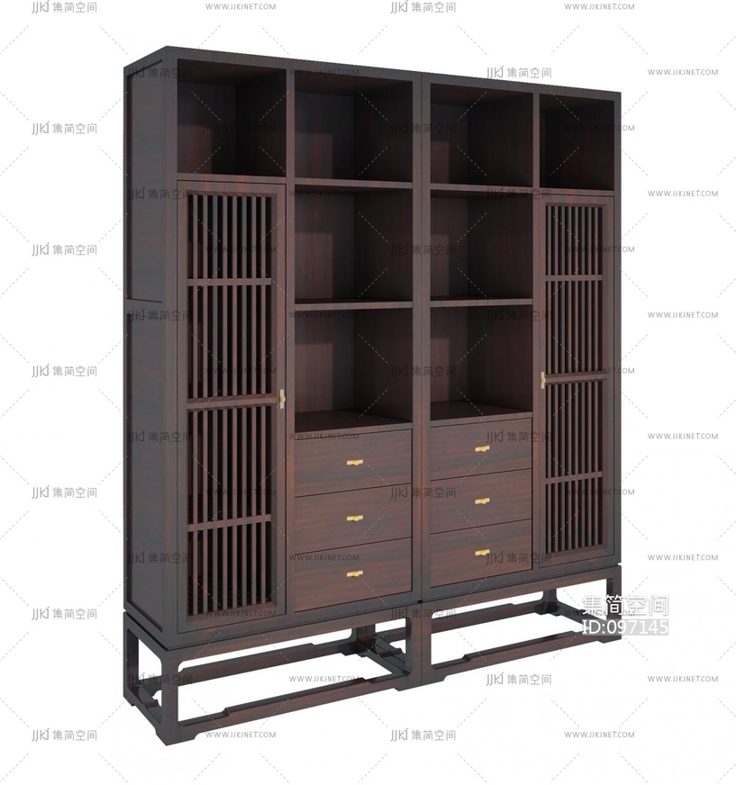 新中式实木书柜, 3d模型下载 [模型ID:97145]