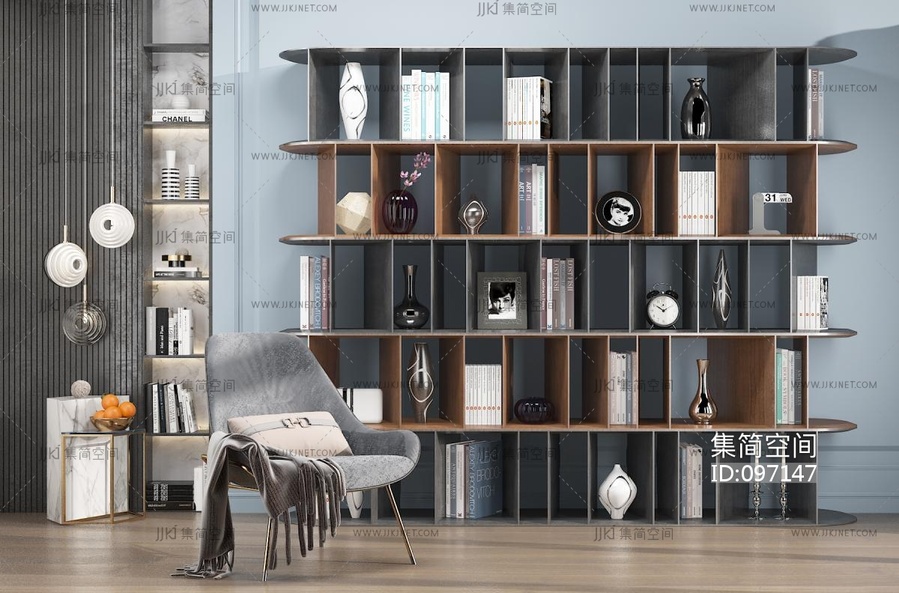 现代书架,休闲椅 3d模型下载 [模型ID:97147]