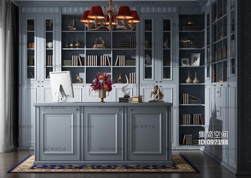 简欧书桌,书柜 3d模型下载 [模型ID:97198]