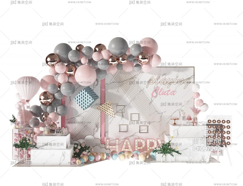 现代婚庆合影区气球美陈, 3d模型下载 [模型ID:97202]