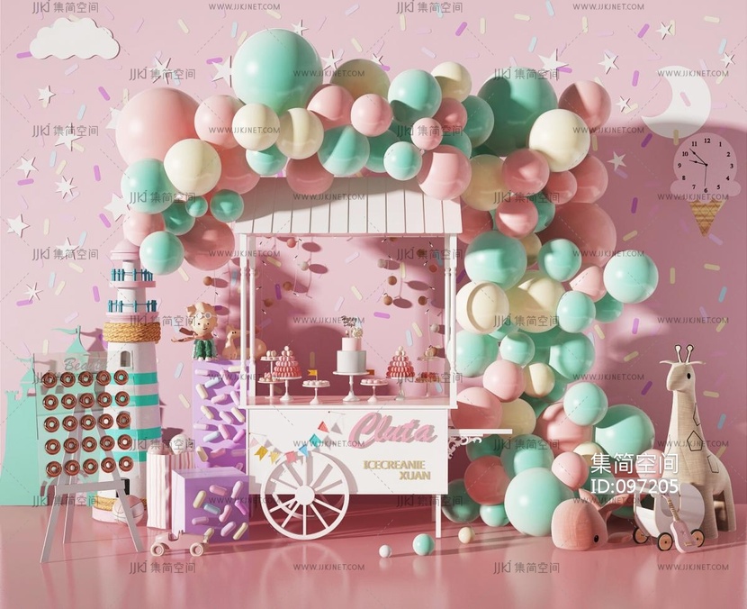 现代气球,甜品,美陈摆件 3d模型下载 [模型ID:97205]