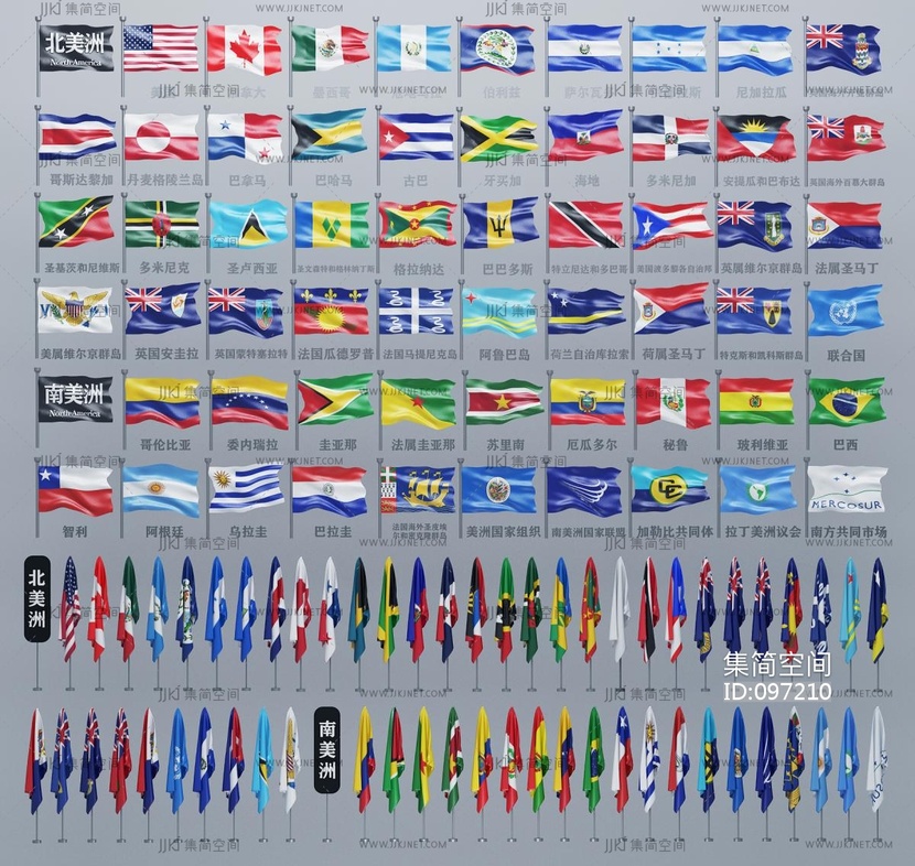 现代国家国旗, 3d模型下载 [模型ID:97210]