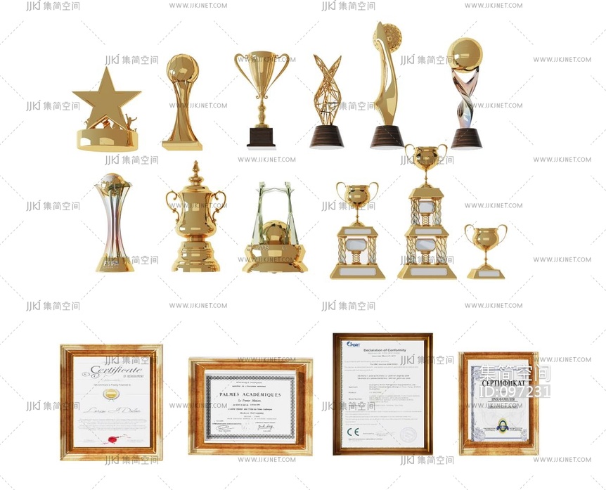 现代奖杯,荣誉证书 3d模型下载 [模型ID:97231]