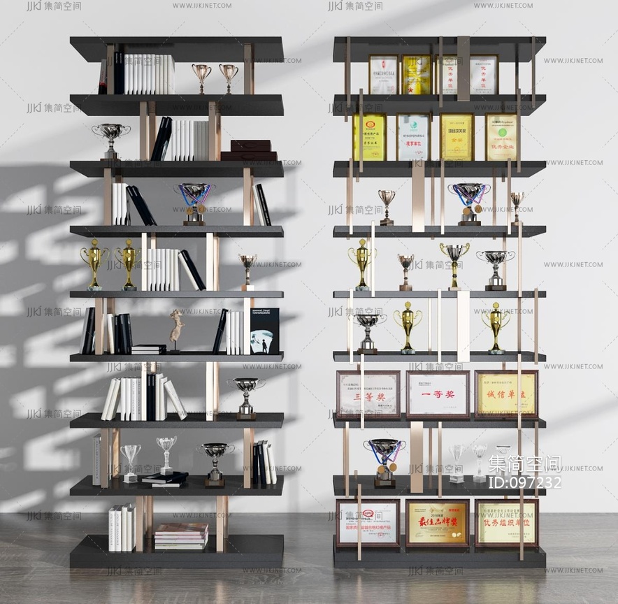 现代荣誉展架,奖杯奖牌 3d模型下载 [模型ID:97232]