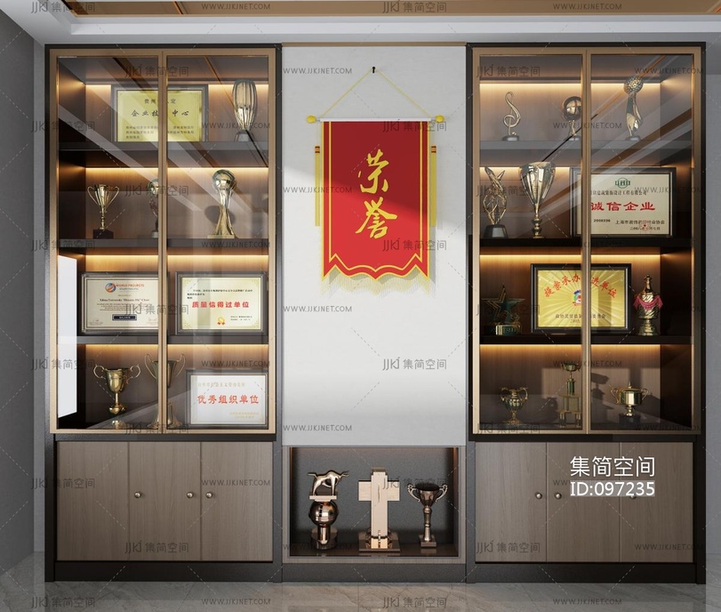 现代奖杯奖状展示柜, 3d模型下载 [模型ID:97235]