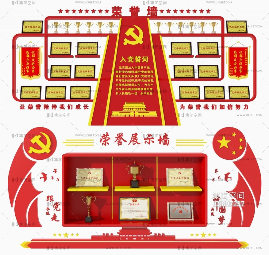 现代党建奖杯荣誉证书,旌旗 3d模型下载 [模型ID:97237]